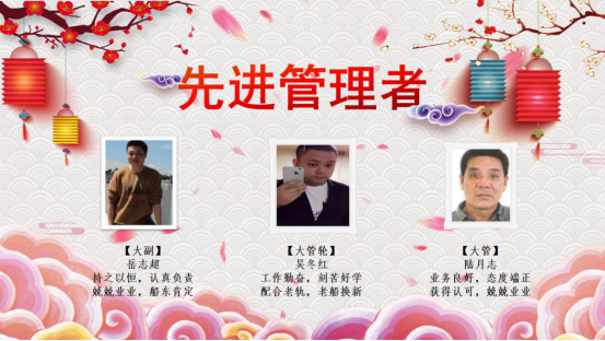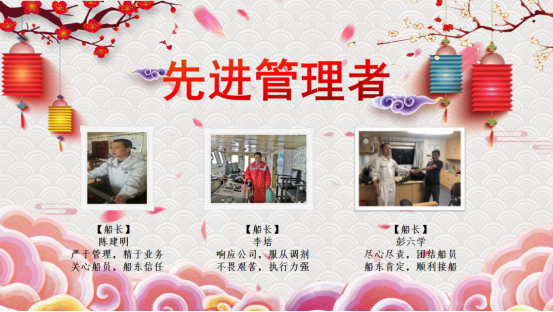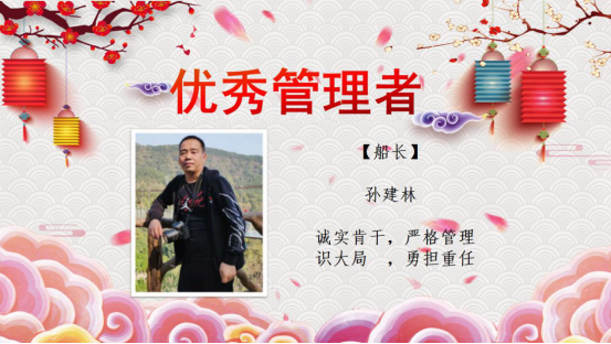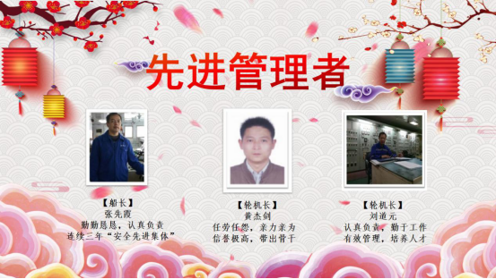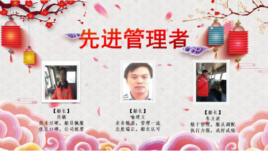 2004到2019,十五年來興盛洋公司不斷地發(fā)展壯大,公司的每一次進(jìn)步都離不開所有人的努力。在新春佳節(jié)到來的時(shí)刻,也同樣是豐收的時(shí)刻,經(jīng)船員主管的推薦和公司的評選,本年度優(yōu)秀管理者、先進(jìn)管理者以及優(yōu)秀船員名單已產(chǎn)生。