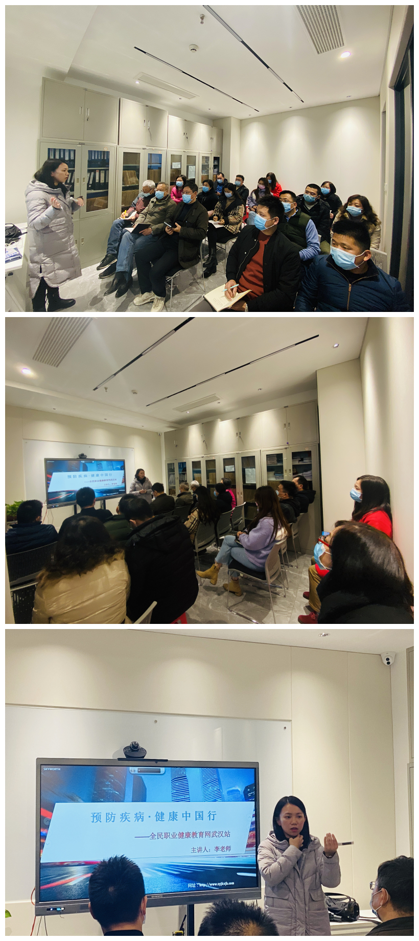 為提高員工健康安全知識(shí),重視職業(yè)病預(yù)防及心理調(diào)節(jié),武漢興盛洋船舶管理有限公司于2020年11月23日開展了以<預(yù)防疾病,健康中國(guó)行>為主題的學(xué)習(xí)會(huì),并請(qǐng)到”全民職業(yè)健康教育網(wǎng)”武漢站的李老師(原武漢市第一醫(yī)院醫(yī)師)來現(xiàn)場(chǎng)為大家做講解。講座內(nèi)容圍繞“突發(fā)事件應(yīng)急處理”、“新冠疫情防護(hù)知識(shí)講解”、“常見職業(yè)病的預(yù)防及改善亞健康”三個(gè)方面展開。李老師為大家講解演示了如何在突發(fā)事件中運(yùn)用正確的救助手法,為大家普及新冠疫情防護(hù)措施以及日常職業(yè)疾病防護(hù)的知識(shí),通過圖文并茂的課件、生動(dòng)典型的案例和通俗易懂的語言,多角度的在未病先防、健康養(yǎng)生、合理膳食、加強(qiáng)鍛煉等多方面進(jìn)行了詳細(xì)講解,現(xiàn)場(chǎng)為員工面對(duì)面答疑解惑。